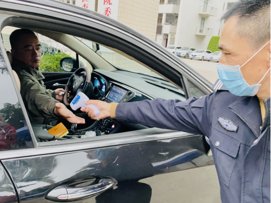 返岗首日,在校门口,教职工进入校园时需出示“iXH小程序健康码”并接受体温监测。