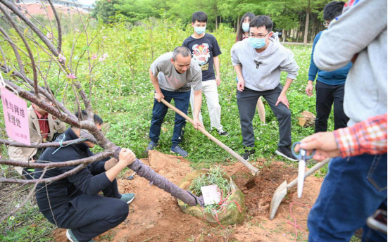 在植树前,王校长阐释道樱花是希望的象征,樱花最早诞生于中国的喜马拉雅山东部,随后漂洋过海,把美好寓意洒向四方。今年是中国共产党建党100周年、“十四五”开局之年,也是我校转设迈上新台阶的开局之年。在万物复苏的阳春三月,在新学期伊始,我们师生相聚一堂,开展校园植树活动,用双手种下希望,培育出新生命,这寓意着师生勠力同心为学校办学育人事业根植茁壮成长的希望、培植繁荣发展的生机。正所谓“十年树木,百年树人。”教育的根本在于立德树人,树人的根本在于立德。希望参与活动的教职工能深刻领悟“种树”与“树人”之间的逻辑关联和深层寓意,在新的起点上继续坚持“学术强校、质量立校、特色兴校、开放办校”办学方略,以“四有”好老师标准严格要求自己,恪尽立德树人、服务育人的职守,在