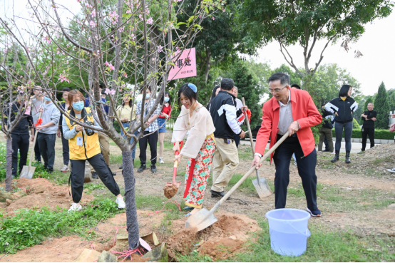 活动期间,由学科与科技管理处、外事处、信息与网络管理处分别种植樱花树,教职工们纷纷拿起工具热火朝天地投入到植树中,大家分工合作,扶苗填坑、铲土灌溉,春光暖阳照耀在每个人的脸上,伴随着欢声笑语和辛勤汗水,这次活动为美丽校园增添了一抹新绿,为春天播种了希望。