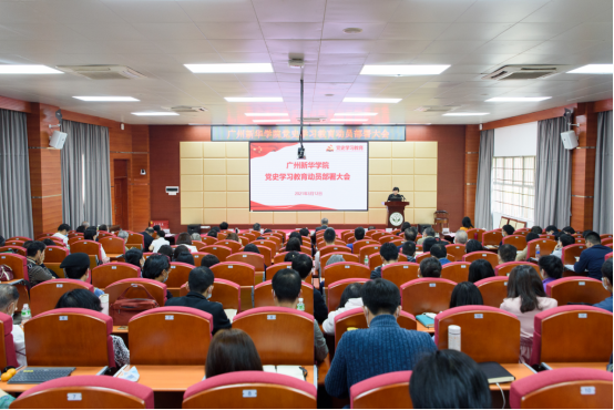 (以下简称“我校”)于广州校区教学楼D101讲学厅召开党史学习教育动员大会。党委书记周云作动员讲话,校长、党委副书记王庭槐主持会议。会议对我校接下来在全校师生中全面开展党史学习教育作了总体部署,对全校师生学党史、悟思想、办实事、开新局提出了明确要求。