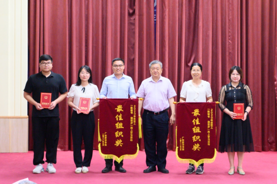 活动现场,王庭槐校长、蓝永金副校长副书记、廖振亮副校长、人事处处长简庚荣、教师发展中心常务副主任陈思燕等为获得2020年度“我读书我进步”网上学习活动奖、2021年寒假“书香抗疫·情怀家国”主题读书月活动优秀征文奖、“书香共享 爱心传递”图书捐赠证书及“十佳阅读之星奖”的个人和单位颁发荣誉证书和锦旗,鼓励