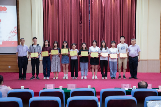蓝永金副校长副书记(右五)为“青春·悦读”读书分享交流大赛颁发二等奖荣誉证书