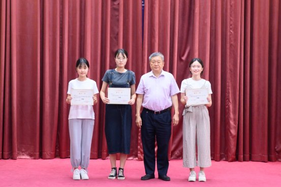 廖振亮副校长(右一)为“青春·悦读”读书分享交流大赛颁发优秀奖荣誉证书