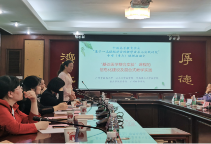 4月17日下午,中国高等教育学会“基于一流课程建设的教学改革与实践研究”重点课题——“‘基础医学整合实验’课程的信息化建设及混合式教学实践”课题启动会在广州中医药大学三元里校区办公楼会议室顺利召开。该项目由广州中医药大学牵头、广东省内五所高校联合申报。其中,