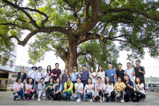 革命传统教育专题培训班学员在叶挺将军当年休憩的古树下合影