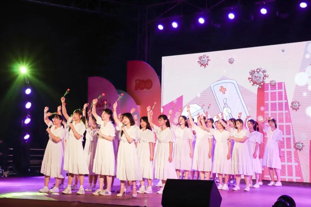 每一次天灾国难,红医护理人都紧急驰援,救治受灾群众。从古到今,他们承担着"健康所系,性命相托"的责任。风雨砥砺,岁月如歌。党的历程走过100年,而他们也紧跟党的脚步走过一程又一程。护理学院师生们表演的《红色护理》,向我们展现了勇敢无畏的红医护理人传承不畏艰险,甘于奉献,救死扶伤,勇于献身的人道主义精神。