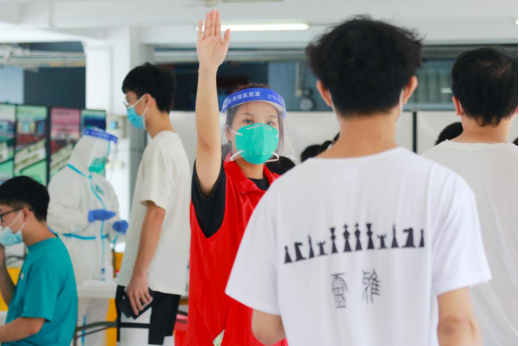 尽管夏季高温炎热,腿酸脚麻,工作量巨大,但志愿者们依旧热情饱满,怀揣着奉献的心,秉承着严谨认真的态度进行协助工作。检测现场,志愿者们积极主动地为同学们答疑解惑,指引其前往检测地,维持现场秩序,并耐心安抚同学情绪,相互勉励。