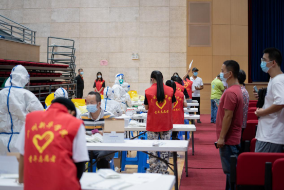 面对时间紧、任务急、检测人数多、志愿者人手紧缺等情况,青年志愿者行动指导中心根据实际情况不断调整安排,在紧急情况中落实疫情防控的任务,组织安排饮用水、马甲、防疫物资等充分保障;志愿者们发挥主观能动性,相互配合,推动核酸检测工作有条不紊地开展。