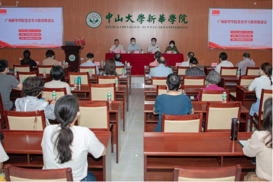 周云同志作学校党史学习教育阶段性工作汇报。她表示,自党史学习教育开展以来,学校党委认真贯彻落实党中央和中共广东省委教育工委关于党史学习教育的工作要求,迅速行动、周密部署,创新工作载体,有序推进“1+10+N”各项工作,引导广大党员干部在党史学习教育过程中不断提高政治判断力、政治领悟力、政治执行力。一是强化顶层设计,确保党史学习教育的推进精度。学校党委成立了以党委书记、校长为组长的党史学习教育领导小组、工作办公室和12个校内巡回指导组,明确了领导小组的工作职责,深入二级党组织开展工作指导,为党史学习教育各项工作的组织开展、纠偏正向、层层落实奠定了基础。二是突出学深悟透,确保党史学习教育的领悟深度。学校党委成立了以党委书记、校长为团长,由思想政治教育学科专家组成的党史学习教育宣讲团,系统开展党史教育理论宣讲。学校宣讲团面向全校师生开展4期“四史”专题宣讲,深入二级党组织开展理论宣讲9场,覆盖师生20000多人次;用好指定学习材料,突出领导干部领学促学,通过“第一议题”、党课、领学、自学、研学等形式,深入开展理论宣讲,分层分类推动专题学习,有效组织理论研究。三是充分调动资源,确保党史学习教育的覆盖广度。用好红色资源,开展革命传统教育,在经典影视文化作品、南粤大地红色教育资源、唱响红色赞歌、讲好红色故事中,传承红色基因,感受党的奋斗历程;全方位推进党史进校园系列活动,将党史学习教育贯穿大学四年教育教学全程,充分发挥团学组织的积极性,组建党史学习教育学生宣讲团一体化推进党史学习教育进校园,丰富活动形式,不断掀起党史学习教育热潮。学校党委组织3期革命传统教育专题培训,分赴潮州、汕头、惠州、韶关开展学习。全校师生同上教育部组织的“四史”思政大课,2万余名师生线上线下齐参与;组织开展“学党史 强信念 跟党走”线上党史知识答题挑战赛,推出线上答题20期,吸引26097人次参与,并受邀参与全国大学生“云端”党史知识竞答大会。四是办实事开新局,确保党史学习教育的工作效度。学校党委切实践行“想师生之所想、急师生之所急、解师生之所困”的工作理念,结合党史学习教育和学校转设后面临的新情况、新问题,学校各级领导深入基层查找、落实、解决问题,聚人心、稳队伍、促进学校教育教学开新局。五是坚持宣传引导,确保党史学习教育的氛围浓度。学校党委着力构建全方位、多维度、立体化的党史学习教育“全媒体窗口”。学校官微嵌入“党史上的今天”学习专窗;官网开辟“党史学习教育”专栏;校报开设“党史学习教育”专版。截至6月3日,学校网站发布主题报道79篇,学校官微、南方号、头条号等新媒体平台发布报道296篇;75篇报道发布在省、市级以上主流媒体,其中学习强国学习平台2篇,南方+广东教育3篇,《东莞日报》1篇,《广东党建》1篇,营造了浓郁的党史学习教育氛围。