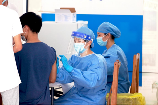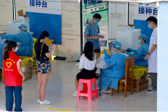 广州校区新冠疫苗第二针接种现场