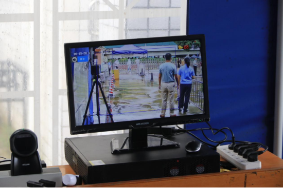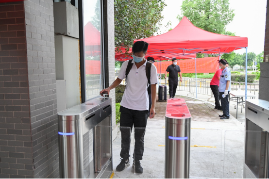 门岗保卫严格落实按照入校测温流程:“佩戴口罩、扫码、亮码、测温”