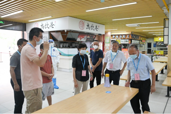 王庭槐校长(右二)、周云书记(右四)在演练现场组织领导干部加强对我校疫情防控措施落实的督导检查