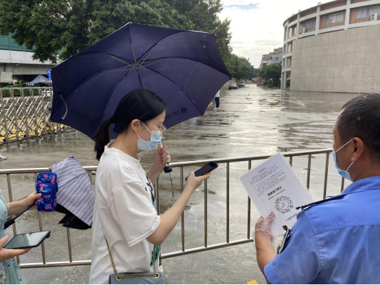 保安查验粤康码、行程卡后,“学生”扫描iXH健康码通过闸机