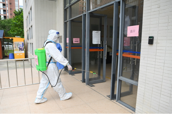 演练过程中,我校工作人员结合疫情防控应急演练工作方案,在校门口对不同风险地区师生员工返校分类管理,并模拟在入校、课堂、生活、就餐的过程中遇到疫情防控突发事件,并进行紧急处置。学校严格落实校园健康监测、发热隔离师生员工观察防护及转运、校园重点场所环境消杀等各项疫情防控规定。
