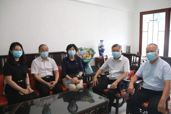 校长王庭槐(左三)、校党委书记周云(右三)一行看望慰问罗蔚茵教授(中)