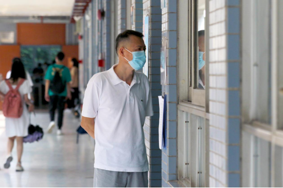 9月6日,分管教学工作的肖化副校长检查东莞校区返校首日教学考试情况