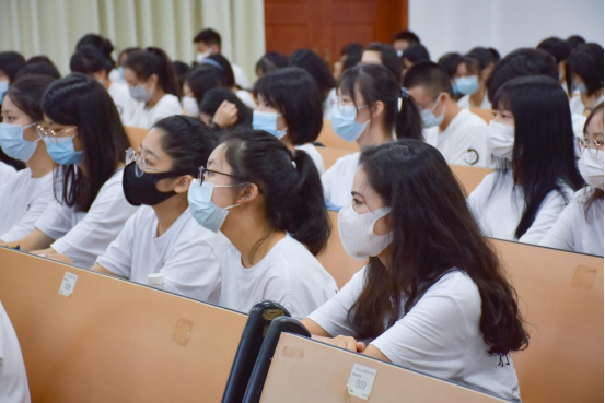 班新生:希望同学们赓续孙中山先生‘振兴中华’的奋斗精神,将振兴中华与实现中华民族伟大复兴的中国梦接续传承,发奋图强,追求卓越,主动投身到社会实践中。珍惜大学时光,努力成长为可堪当民族复兴重任的栋梁之才。王庭槐对同学们提出要求:一是要怀赤诚之心,求学问道以自强,开拓求学的渠道、拓宽知识的广度,践行“三早”教育理念,积极向导师、向优秀同学、向实践“问道”;二是要培养探索的能力,在面对难题时要学会边探索边思考,在学习实践中践行“激越四段式”教学法,培养自主学习习惯、创新性思维和分析性思维;三是厚植家国情怀,将学业成就和为社会贡献价值作为自觉追求,要胸怀“大爱”,要敬爱师长、关爱父母、热爱祖国,自觉将学业成就、实现个人价值投放到社会的大环境中,为社会发展做出贡献。