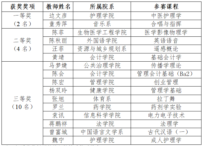 (注:相同获奖级别的教师按姓氏笔画排序)