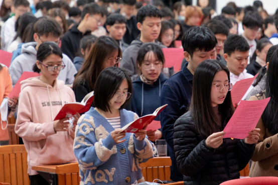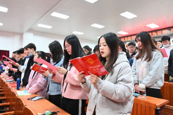 师生代表齐声诵读,弘扬宪法精神