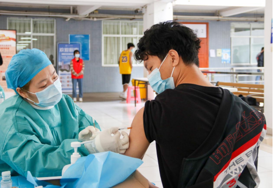 排队等候过程中,在场师生在志愿者、工作人员的指引下依次测量体温、扫码入场,准确填写“广东省新型冠状病毒疫苗接种知情同意书”,再到录入个人信息、接种疫苗、留观等待,直至顺利离场,接种工作整体推进过程平稳、高效、有序。