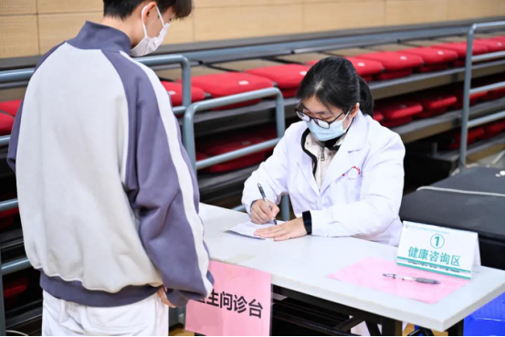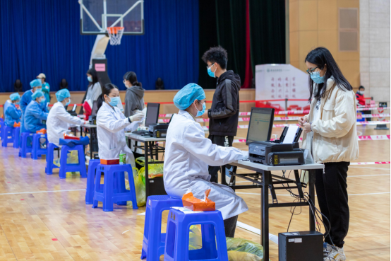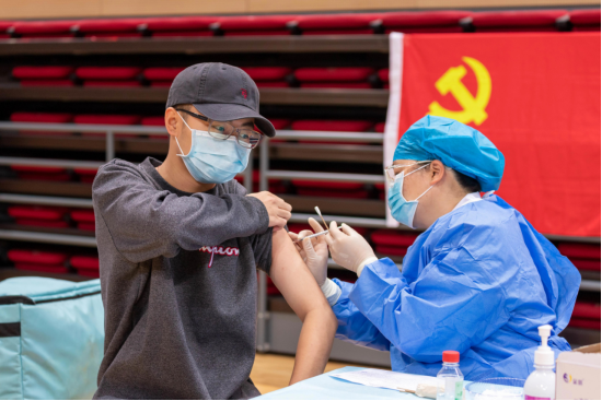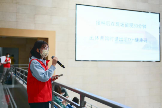 疫苗接种现场共设置科兴和生物两处疫苗供应点,为具不同需求的师生提供接种服务。场地严格按照操作规范进行规划,共布置了10处接种点,设有健康咨询区、信息登记区、接种区、留观区等功能区。