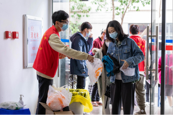 在雨天里,志愿者为接种师生贴心准备了收纳雨具的塑料袋,这给19级会计学专业的苏彤(左一)留下了深刻印象。在此,她想对志愿者们说:“辛苦你们了,你们是最棒的!”同时,她也深刻认识到了此次加强针接种活动的重要意义,“年关将近,接种疫苗不但加强了师生的防疫能力,而且能够助力全市乃至全国的防疫工作。”