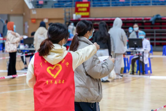 在接种完疫苗后,20级英语专业的徐婉倩(右一)感触良多:“此次我校的疫苗工作安排合理,现场布置有序,志愿者们也非常认真,可以看出学校对师生安全的关心与呵护。”面对当下严峻的疫情形势,她认为全民应当做到“应接则接”,接种了加强针之后,才能够更有效地保持身体对病毒的免疫力。