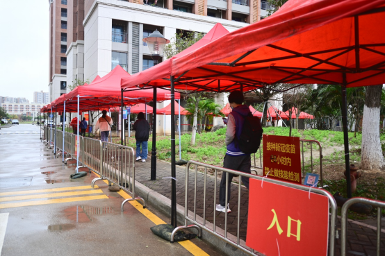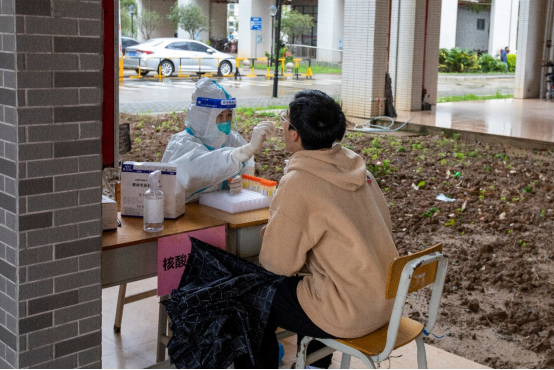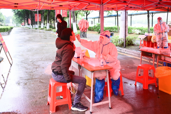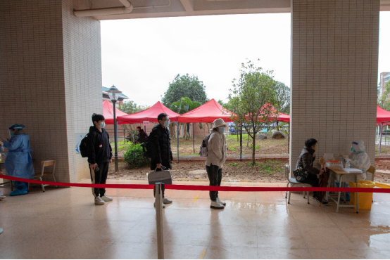 虽然近日穗莞两地气温骤降,但医护人员仍坚守岗位在寒风中为同学们采集核酸,共同构筑平安校园。