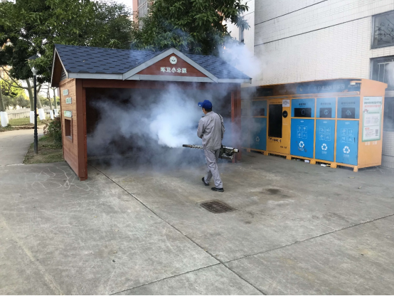 总务处安排专业消杀团队,对校园公共区域进行了全范围覆盖的“除四害”、消毒作业。