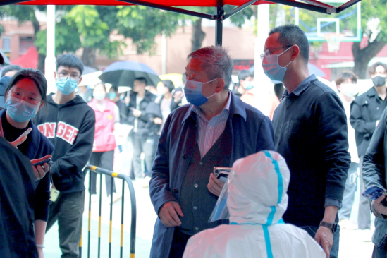 我校副书记副校长蓝永金在东莞校区核酸采样现场视察