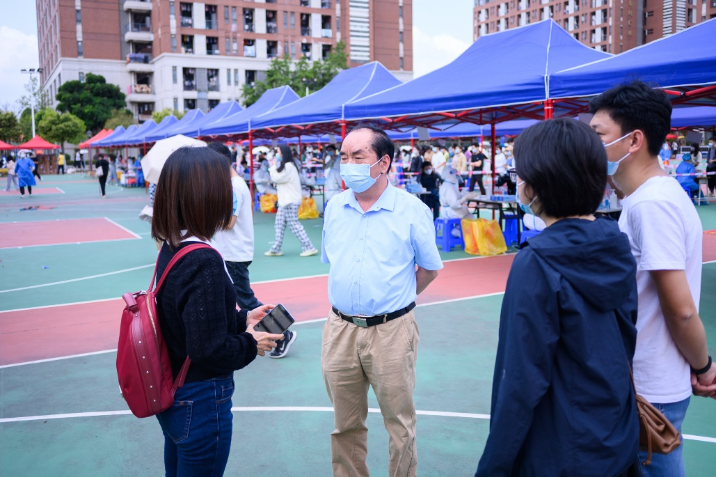我校党委副书记、副校长蓝永金在核酸采样现场指导工作