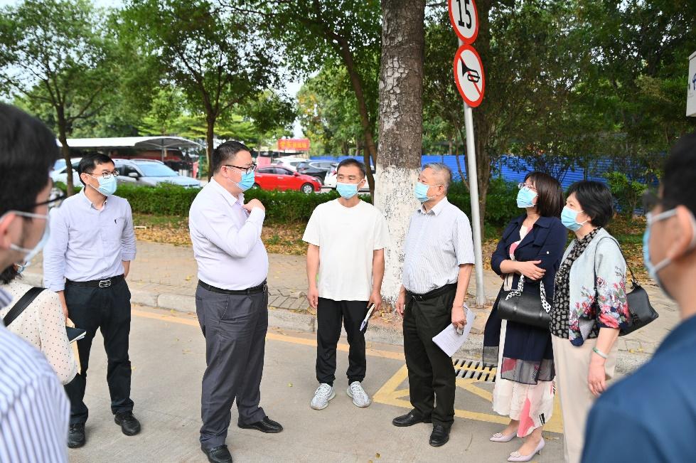 近期,国内疫情防控形势严峻复杂,学校疫情防控工作面临巨大挑战。为扎实做好校园疫情防控工作,筑牢校园疫情防控防线,3月19至20日,广东省教育厅二级巡视员曾声海、德体卫艺处三级调研员董业权、东莞市教育局三级调研员高万军、基信科副科长刘晓东,东莞市人民政府副秘书长翟现春、市人民政府主任督学杜润江、市人民政府教育督导室主任王妙家、市疾控中心免疫规划所所长陈绍丽相继莅临我校东莞校区督查指导校园疫情防控工作。