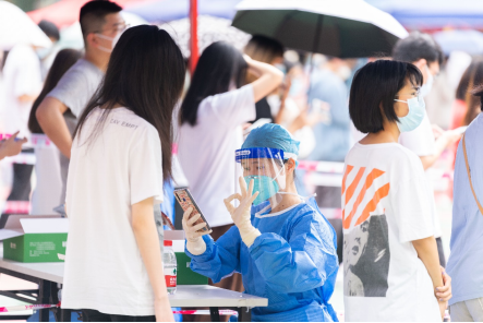 师生出示ixh健康码扫描后方可离开采样现场