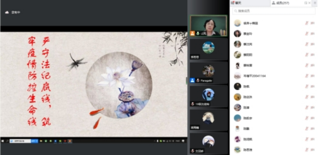 3月17日,法学院党总支书记、执行院长李岚开讲“严守法纪底线,筑牢疫情防控生命线”为主题的线上“思政第一课”,从“守纪律,讲规矩”“敬畏法纪”“严明律己”“在疫情防控中要严格遵守的有关法律规定”四个方面分析疫情防控中违法法规的行为。