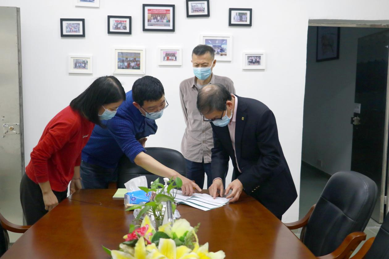 肖化副校长(右三)一行检查药学院实验室日常卫生防疫工作台账