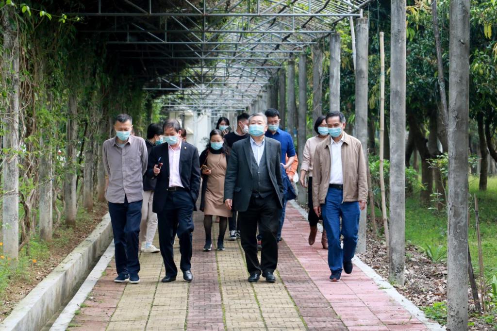 校长王庭槐(前中)、纪委书记杨卫华(前左)走访学生生活园