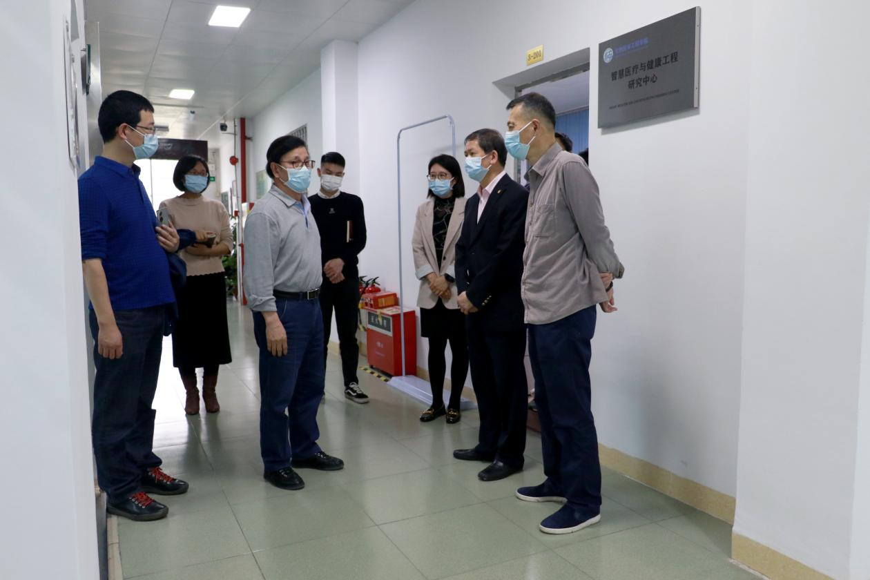肖化副校长(右一)一行走访慰问生物医学工程学院师生,了解该院线上线下融合教学整体情况