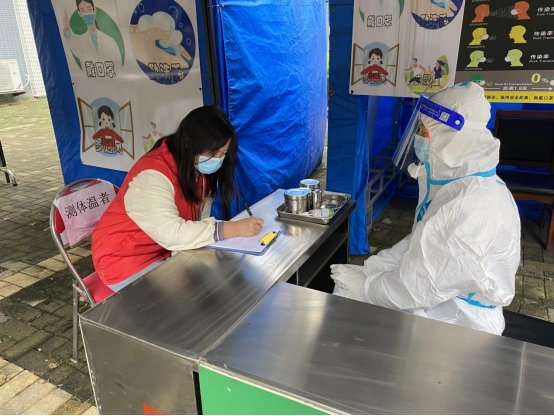 发热学生在临时观察点进行二次测温,并填写流行病学调查问卷