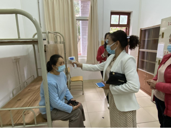 工作人员对隔离宿舍、临时观察点和转运等候区进行消毒