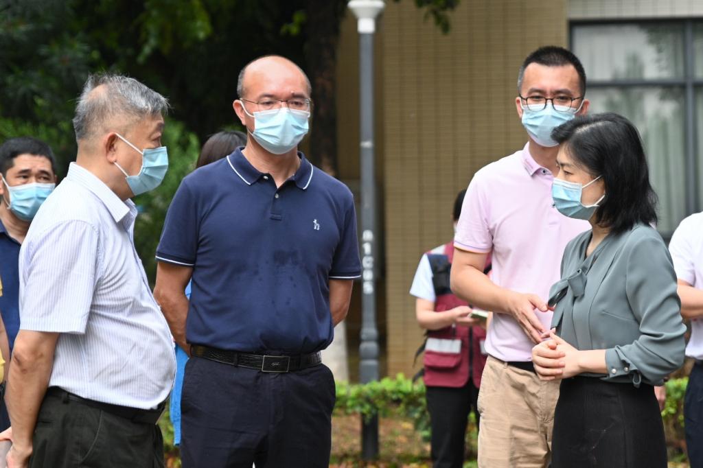 黎军副市长对我校如何做好直接接触考生的考务人员的闭环管理、考试期间考生发生异常情况的应急处置、考生考前14天健康状况及行程轨迹的精准摸排、考生进校人脸识别查验口的优化设置、考生于东校门排队进校的秩序及外围环境安全、考生进出东校门口的氛围营造及环境改善等六项问题作出指示。