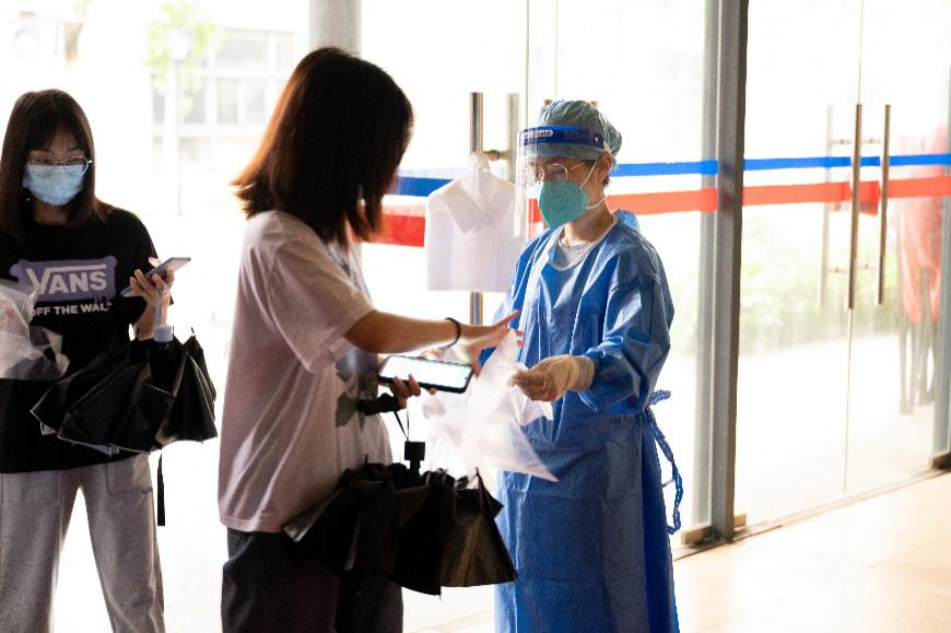 医护人员耐心帮助师生完成咽拭子采样