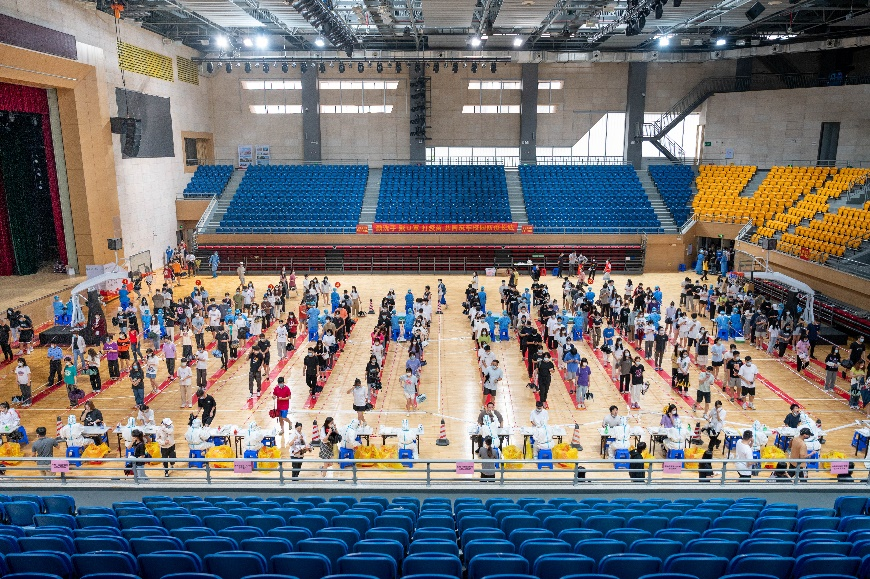 学校总务处、校团委等各职能部门统筹组织工作人员及志愿者推进管理协调、各功能区对接、出入口指引等工作。工作人员明确责任分工,分批次指引进入馆内。受检师生员工提前准备好葵花码,佩戴口罩并保持队列间距,依序进行核酸采样,完成核酸检测后登记iXH健康码迅速离场,现场秩序井然。
