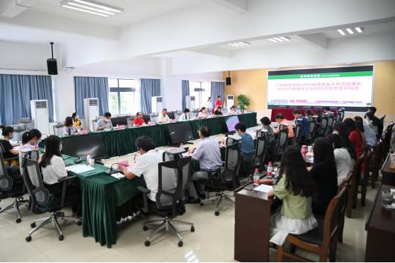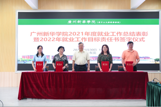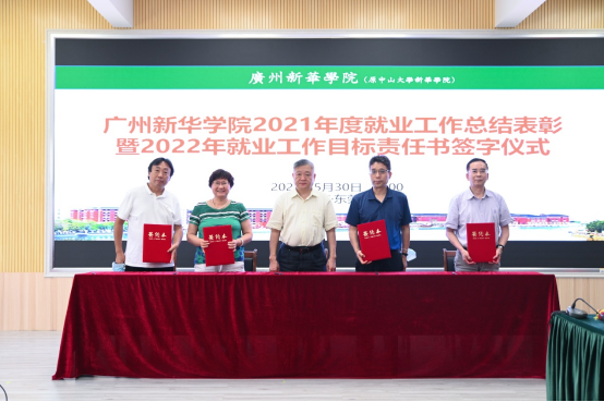 (以下称“我校”)于东莞校区召开2021年度就业工作总结表彰暨2022年就业目标责任书签字仪式会议。我校校长王庭槐,党委书记周云,党委副书记、副校长蓝永金等学校党政领导,各学院(直属系)院长、书记,学生处处长,各学院(直属系)党总支副书记,学生处学生就业指导中心全体人员,2022届毕业生辅导员、班主任等参与会议。会议由学生处副处长刘艳主持。