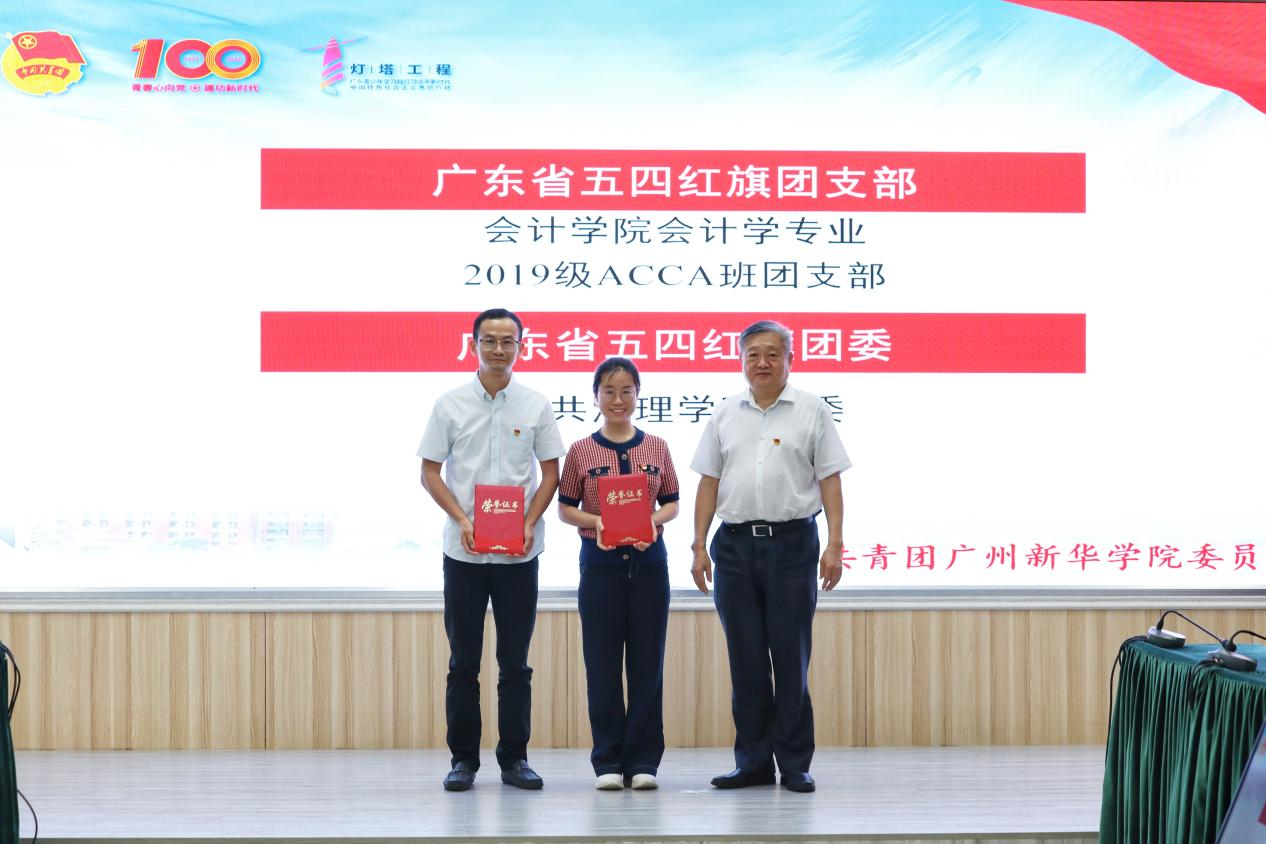 王庭槐校长(右一)为“广东省五四红旗团支部”“广东省五四红旗团委”获奖单位颁奖