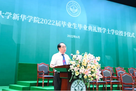 “今天于你们而言是一个值得庆贺的日子,你们圆满地完成了大学四年的求学生涯,即将告别母校,开启下一阶段的人生新征程。”王庭槐校长代表学校向2022届全体毕业生表示了热烈的祝贺。
