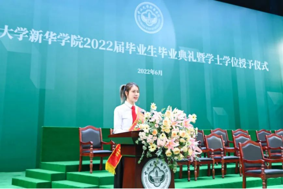 “雄关漫道真如铁,而今迈步从头越。”毕业典礼上,外国语学院的钟俊桐作为优秀毕业生代表发言。她与现场毕业生们一同回顾了大学学习生活中的点点滴滴,引起了现场师生的共鸣。