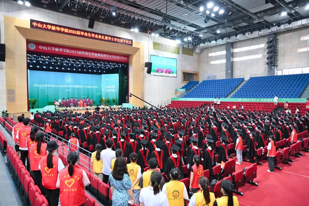 学院,下文简称“我校”)在东莞校区体育馆举行毕业典礼暨学士学位授予仪式。典礼仪式同步开通了图片、视频形式的网络直播,与受疫情影响未能到场参加的毕业生、毕业生家长及师生“云端”相聚,分享学有所成的喜悦,一同见证这场庄严而美好的青春盛典。