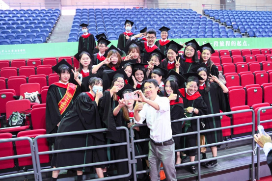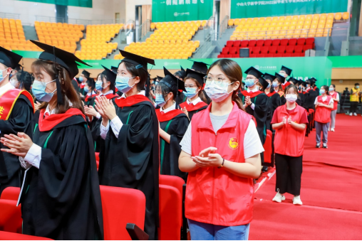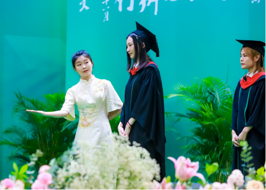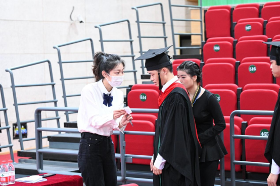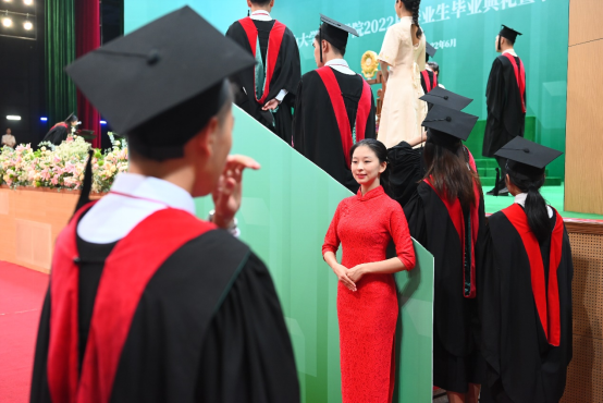 很荣幸能够作为志愿者参与到本次仪式当中,现场氛围温馨融洽又振奋人心,在与师兄师姐们的沟通中我感受到他们对我们工作的大力支特,也能感受到他们对本次学士学位授子仪式的期待。在此,我想对即将毕业的师兄师姐们说:祝你们毕业快乐,希望你们能够继续奔走在自己的热爱里,绽放出属于自己的光芒!看到今天穿着学士服自信从容的师兄师姐们,我也希望三年后的自己经过学习的沉淀,能够像师兄师姐们一样学有所成,在自己的专业领域大放异彩,在不断精进中成就更好的自己。
