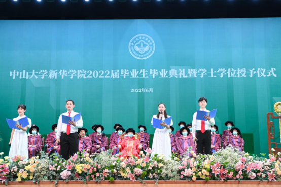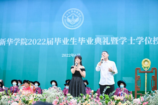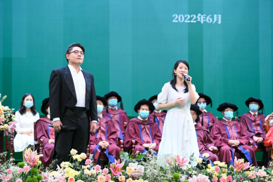 在现场,我校老师、来自我校不同院系专业的各年级师生代表为授予仪式带来了乐器演奏、歌曲演唱、书法表演、深情朗诵等精心筹备的演出节目,借此表达对2022届毕业生们的不舍与诚挚祝愿,现场氛围热烈高涨又温情满满。