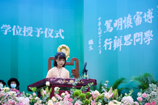 毕业生打造了一个庄严又不失温馨,神圣又不失浪漫的毕业典礼暨学位授予仪式。“大学毕业,此其发轫;为社会福,为邦家光;勖哉诸君,努力自强”,刘婉莉(字霖霖)以孙中山先生的训词与同学们共勉,祝愿同学们永葆仁念,坚守对真善美的追求,秉持家国情怀,将